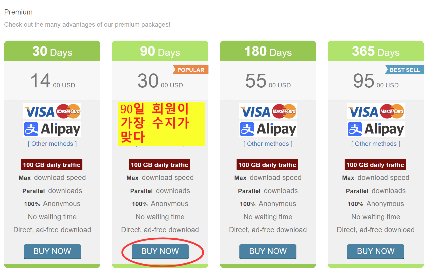단계2:회원 유형을 선택하고"buy now"를 클릭한다.
